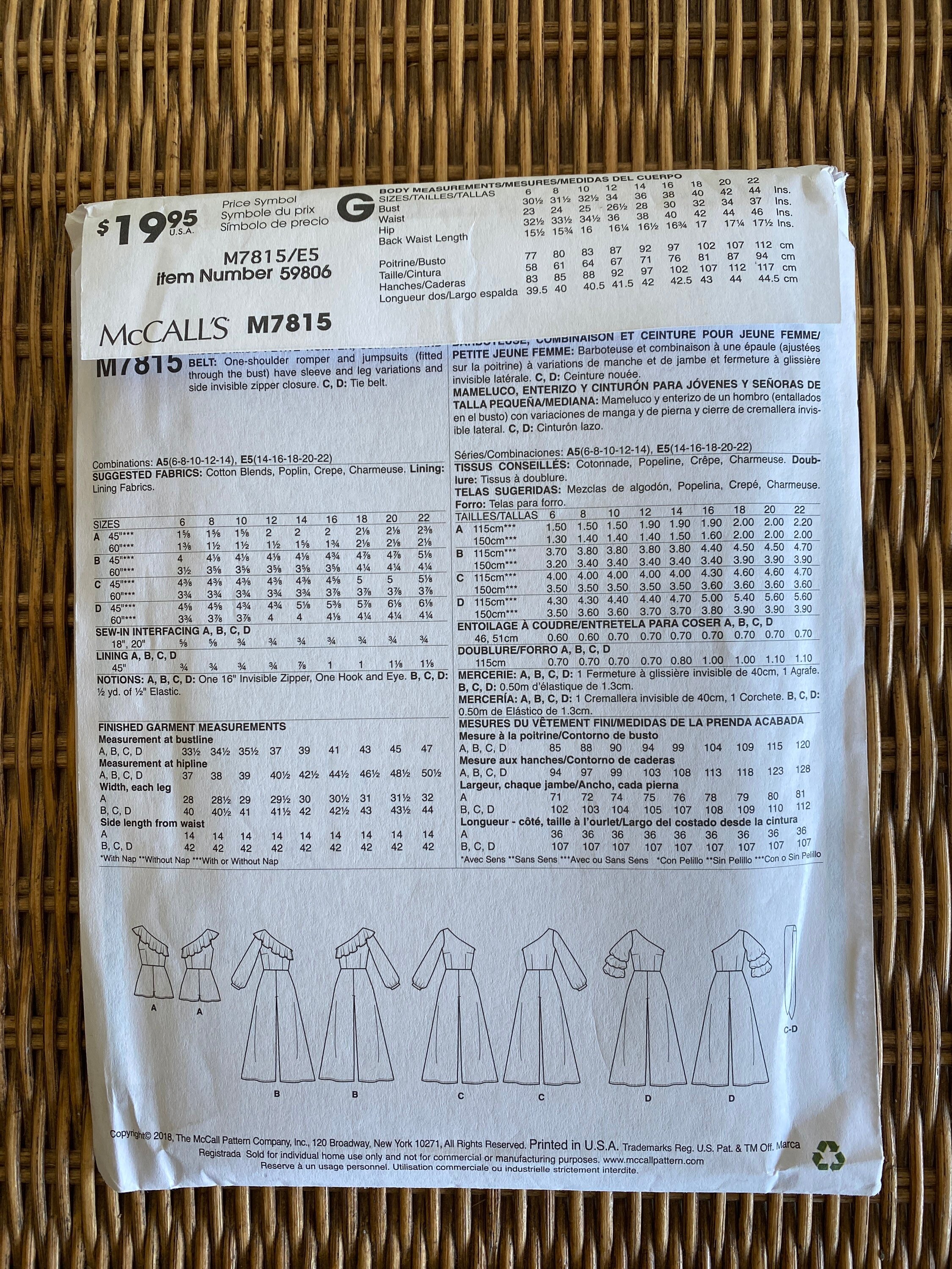 Mccalls Jumpsuit And Romper Pattern Sizes 14 22 Etsy